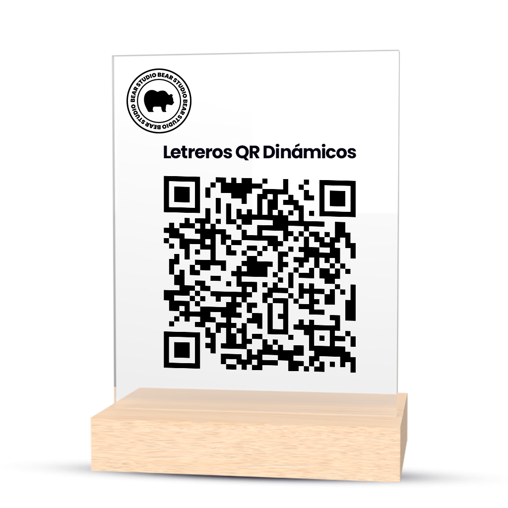 Señalética en acrílico con QR dinámicos. Actualiza contenido sin cambiar el material físico.